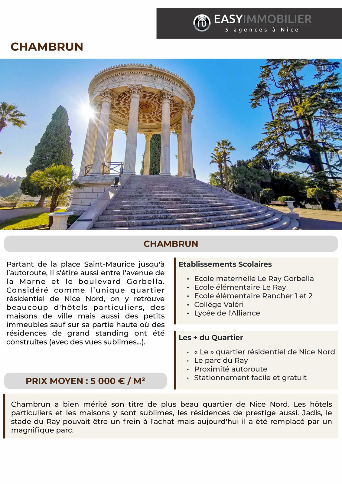 Les hôtels particuliers et les maisons y sont sublimes, les résidences de prestige aussi. Jadis, le stade du Ray pouvait être un frein à l'achat mais aujourd'hui il a été remplacé par un magnifique parc.
